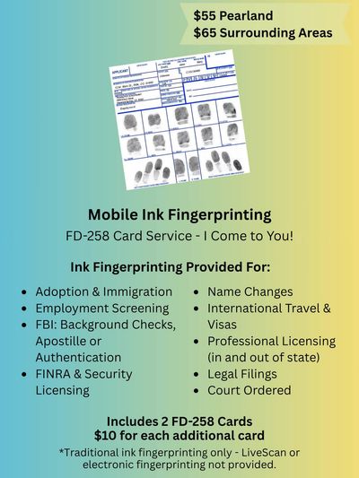 Includes 2 FD-258 fingerprint cards / $10 per additional card